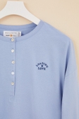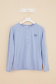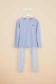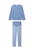 Ця ніжна блакитна піжама створена спеціально для комфортного сну та відпочинку майбутніх мам. Верх виконаний із м’якої еластичної тканини, що не сковує рухів, має зручну застібку на ґудзики — ідеально для годування після пологів.