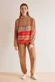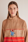 Флісова піжама з довгими рукавами, довгими штанами та коричневим принтом ведмедика Паддінгтона. Ідеально підходить для прохолодних вечорів! - Топ у стилі светра з високим коміром, застібкою на блискавці та спущеними рукавами. - Штани з еластичним поясом та манжетами по низу. - Добре поєднується з іншими речами та аксесуарами з колекції.