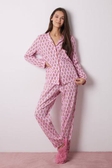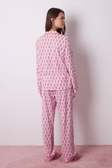 Піжама зі 100% бавовни, рожевого кольору у квітковий принт. Ідеально підходить для того, щоб зігрітися та залишатися стильним вдома. - Сорочка з довгими рукавами, вирізом на лацкани з центральною планкою на ґудзиках та кишенею з клапаном на грудях. - Довгі штани прямого крою з еластичним поясом, що регулюється стрічкою в тон з люрексом та контрастною окантовкою по низу.